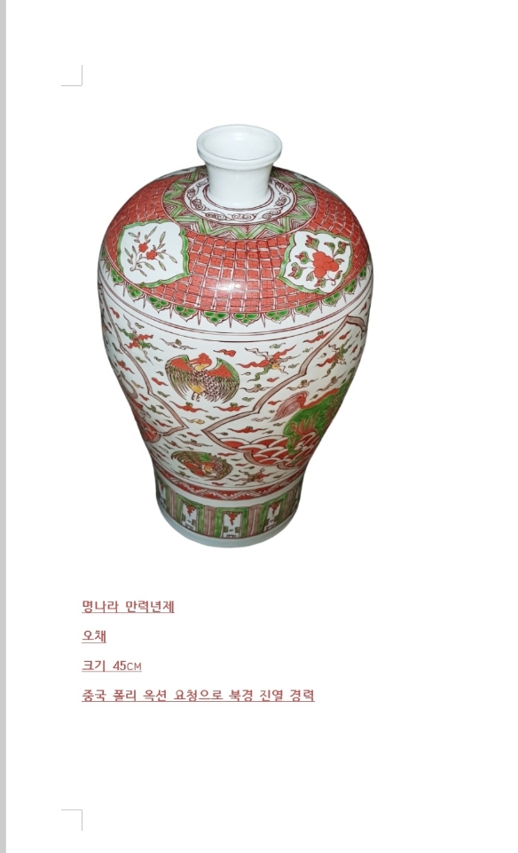 도자기 명나라 오채 도자기 GN 갤러리의 "명나라 오채 도자기" 에 관심 있으신분 은 관리자 에게 별도로 문의 주세요!임대 도 가능 하오니 편하게 문..
